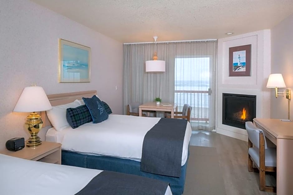 As you settle into your cozy refuge at , let the siren song of the ocean serenade you from your balcony. The plush, non-smoking rooms come with all the comforts of home, from spacious layouts that can accommodate families or couples to those with striking ocean views that make waking up feel like a dream. Whether you're sipping your morning coffee while watching surfers catch the waves or curling up next to the fireplace after a long day, each space is designed with relaxation in mind. Don't forget to take advantage of the complimentary free toiletries—perfect for a little pampering on your getaway!